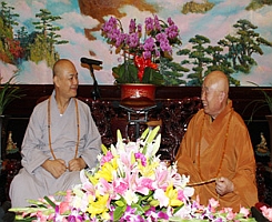 随后,中佛协传印会长、学诚副会长、王健秘书长并在广济寺怀远堂大客厅会见了广声法师一行。中佛协张琳副秘书长主持了会见仪式。