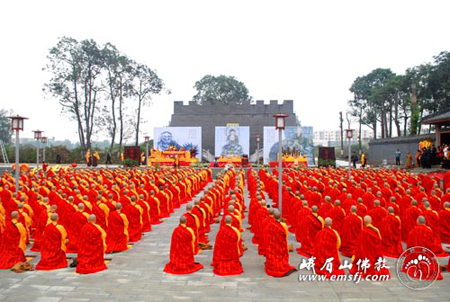 在传戒法会临近结束时,四川省政协民宗委主任董玉梅,四川省委统战部副部长王增建等相关领导及中国佛教协会咨议委员会主席惟贤长老,中国佛教协会咨议委员会副主席海山长老,中国佛教协会副会长、四川省佛教协会会长永寿法师,中国佛教协会副会长、江西省佛教协会副会长纯一法师等诸山大德来到法会现场,向此次传戒法会的圆满成功表示祝贺,并与新戒们合影留念。