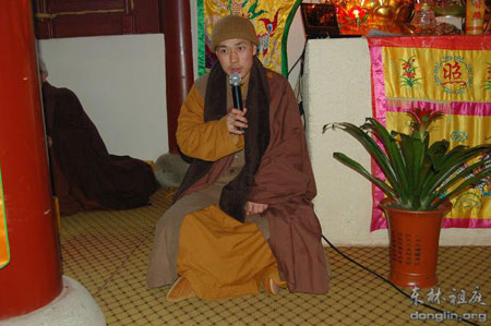 2011年1月19日下午2点,江西庐山东林寺2010年冬季49天闭关念佛圆满结束,四众弟子百余人在山顶关房香光殿进行了大回向,接着召开了闭关感受交流会。定圆法师主持了上述活动。