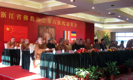 来自全省11个市的80多个县(市、区)的159名代表,因病因事请假5人,实际到会人数154人。开幕式前,省佛教协会还举行了祈祷法会。省佛教协会副会长可祥法师致开幕词,惟航法师作主题为“牢固树立和谐理念,充分发挥佛教优势,更好地服务于党和国家中心任务”的工作报告。省委统战部副部长、省民宗委主任王毅在开幕式上做了重要讲话,他向与会代表提出了殷切希望,并对浙江佛教当前和今后一段时期的中心任务提出了新的目标、新的任务。