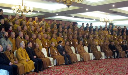 新当选的省佛教协会会长怡藏法师在闭幕式上发表讲话,表示新一届佛教协会将带领全省佛教四众弟子在党和政府的正确领导下,高举爱国爱教的伟大旗帜,贯彻落实科学发展观,坚持党的宗教工作基本方针,努力做好新形势下的佛教工作;充分发挥佛教优势,加强自身建设,加大人才培养的力度,提高四众弟子的整体素质;及时传达领导讲话精神,团结和引导广大信教群众,为维护社会稳定、宗教和睦,为浙江佛教的健康发展,为构建和谐社会作出应有的贡献。(图:天童禅寺)