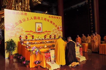 2010年12月9日是原上海市金山区佛教协会会长、金山区五龙禅寺、松隐禅寺、性觉禅寺、万寿寺、东林寺五寺方丈,并兼任福建、浙江、江西等省诸寺院方丈的达公法师圆寂三周年纪念日。当日上午,金山区佛教协会在东林寺观音阁举行了“无尽的追思,永恒的怀念――纪念达公上人圆寂三周年传供法会”。中国佛教协会副会长、上海市佛教协会会长、玉佛禅寺方丈觉醒法师,市佛教协会名誉会长妙灵长老,市佛教协会副会长光慧法师和金山区佛教协会四众弟子,以及区社会各界的代表,达公法师的亲属等300多人聚集一堂,共同表达对达公上人的真挚怀念。