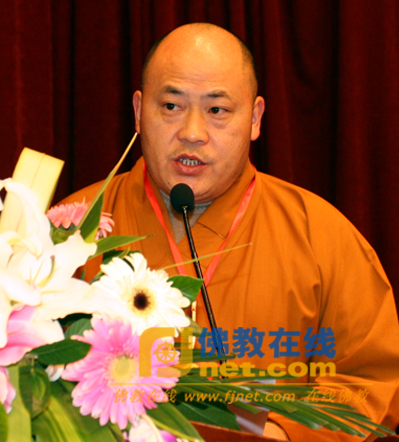 昌善法师宣读省佛教协会第八次代表会议决议