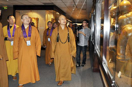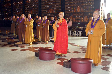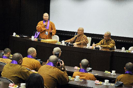 佛光山寺方丈心培法师也陪同参访团参观,他表示,上海玉佛禅寺位于上海市中心,兼具人间性、现代化、与时俱进,如奥运世博成功的以心灵佛教来提升都市进步精神,觉醒法师发表了许多学术论文更是都市佛教的倡导实践者。