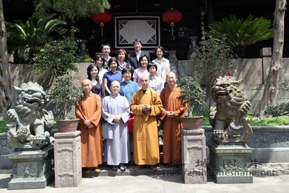 2011年4月26日,台湾法相山文教基金会参访团一行11人在慈智法师的带领下,前来浙江宁波天童寺参学交流,天童寺方丈诚信法师在大鉴堂热情接待了大家。