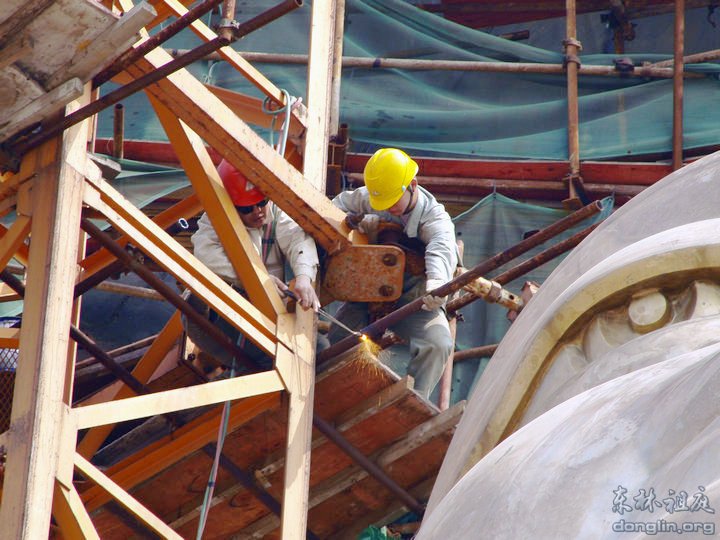 佛面起吊在即:工人处在工作准备状态(二)