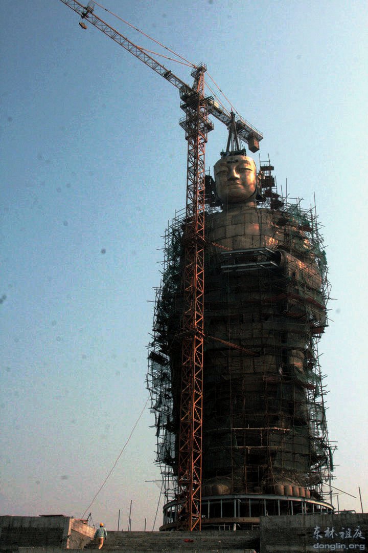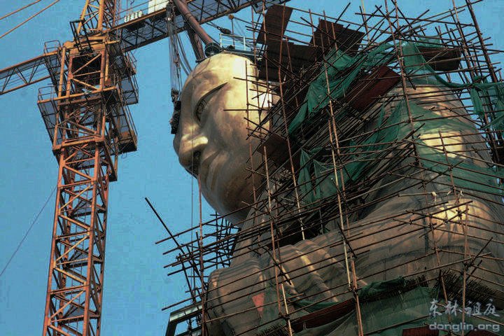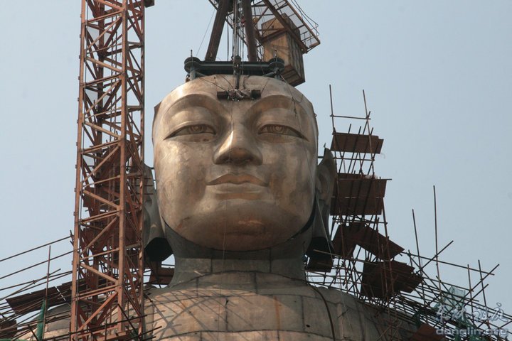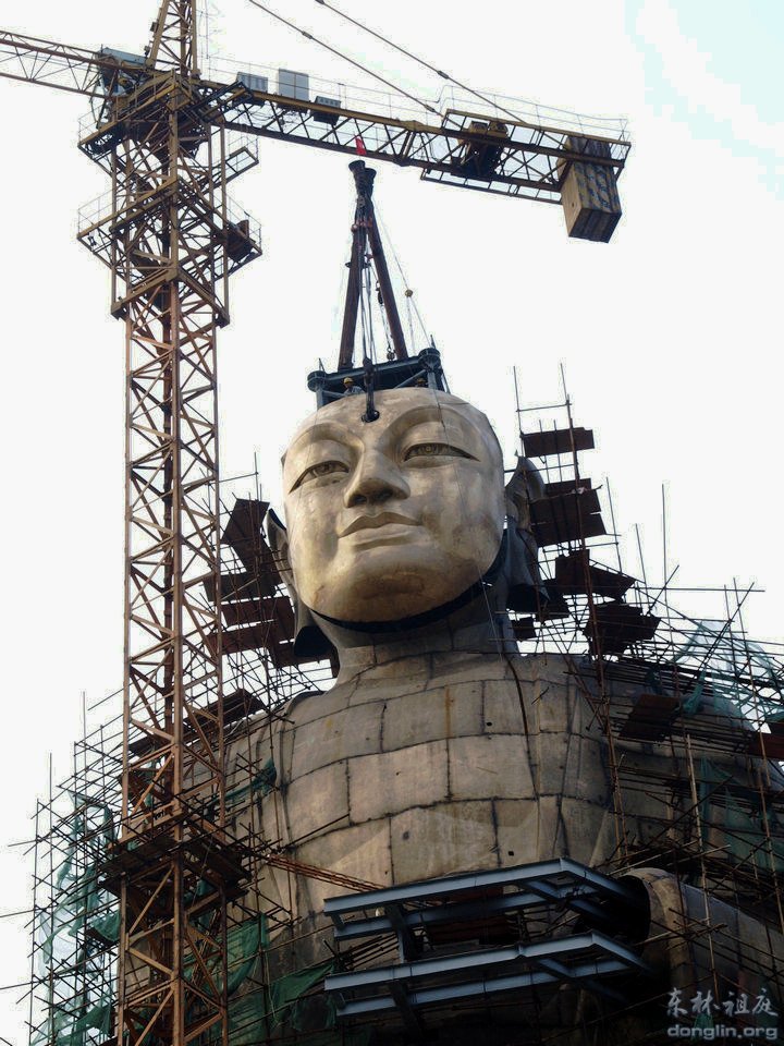 东林大佛佛首面部26日起吊安装成功