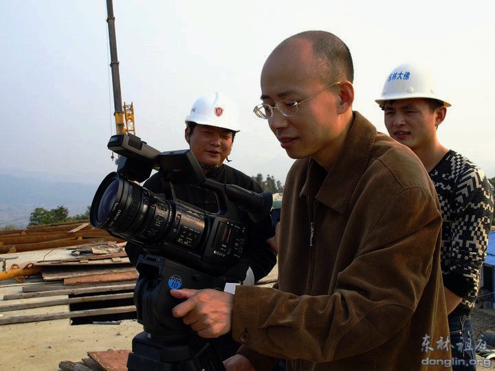 东林净宗学会视听中心工作人员用摄像机全程记录了大佛佛面起吊与安装过程