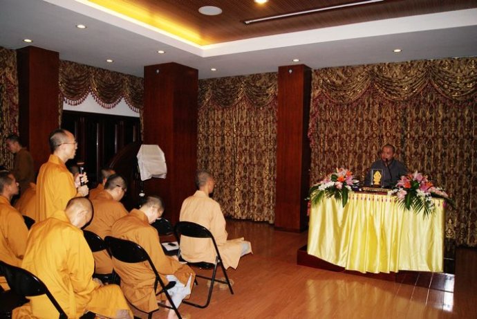 法师特别说起净律寺的学佛院,那是忏云老和尚创建的。老和尚毕业于当时的北京佛学院(中国佛学院的前身),认识到佛学院偏重于教理的研究,而佛学在日常生活中的落实就显得不足。老和尚强调解行并重,所以就命名“学佛院”。 法师感到十年来,中国大陆佛教发生了翻天覆地的变化。尤其看了龙泉寺五周年的大事回顾,感叹龙泉寺从无到有的艰苦创业非常不易,要有相当的毅力和恒力。台湾佛教实际上也经历过类似的开山过程,通过上一代老法师们的努力,现在基本上把硬体和软体建设起来了,所以台湾的这一代法师主要是守成。不像大和尚在这边做这种开天辟地的事业,一定会在历史上留下浓浓的一笔! 关于修行的次第,法师说:整部华严经就是在讲成佛的次第,从信到解到行到证。我们这边学的《广论》也是很讲次第的。大家为什么信佛,常常也说不出什么原因,这就是一种宿世的善根,潜意识的波动。见到三宝自然很欢喜,表示过去生种下了善根——信心的种子,就是依着信心的善根入佛门。但每个人的因缘又是千差万别。龙泉寺有一个很好的学佛次第和方法。但是,不一定每个人都有这个福报,他本身很想了解佛法,但是没有环境和助缘,所以他一直停留在依着过去善根的那种微软的信心上。 假设想要到达第二个阶段去深入了解佛法的时候,可能遇到障碍烦恼的时候,就会退转。因为过去的善根的力量是比较薄弱的,要经过今生的努力加强善根的种子,所以第二个阶段要次第的学习佛法,此时完整的了解佛法是很重要的。没有完整的了解佛法就好像闭着眼睛走路,会很危险,也易走偏差。所以解的部分是帮助我们深信佛法。经典里讲“闻经、达理、断疑、生信。” 信心如何坚固哪?透过佛陀、祖师的法语开示,学习理解通达这些道理,这个过程就能把内心的那个疑惑一个一个断除,所以这个信心才比较坚固。理解之后再进一步的实修,验证所理解的佛法,所以解同行要并进。否则所解只是停留在文字或者知识的层面。所以这个智慧一般是由闻慧入思慧,再进一步达到修慧,修慧时就会慢慢有证悟的境界出来。首先培养这种禅定的基础,禅定要去修证,就是培养定力。观就是培养观照的智慧,有定力的时候观照佛法的道理,乃至宇宙人生的真相,就能够比较观照的清楚,也即止观双运。禅定同智慧是相辅相成的,智慧是灯,禅定御风,实相是画,定慧要等持。风就是内心的妄念、分别。而这一切的基础就是戒,戒是各宗的地基。否则,很难成就甚深的禅定和智慧。修行人就是修定慧这两样,直到圆满。禅宗见性也即是见到心性的本来面目,就是成佛之后的这个中道——实相智慧。但见性后,还要趁性起修;修之后,还要断这个烦恼,还要证。另一方面通过教理的研究,也可以从文字语言中慢慢理解乃至悟到心性的本来面貌。等到修到一定的时候,就会有些修行的证悟。所以依着经典,才会有保障,就可以检查是不是符合佛陀教的道理。 蕅益大师依着智者大师的法华三大部《法华玄义》《法华文句》《摩诃止观》,抽出精华作了一部《教观纲宗》,就是一个佛法概要。所以对佛法的整体概括有所了解后,我们再学一部经典时就能从全貌的角度看待这部经典,才不会被这一部经限制住,就不会学了这一部就不能再学其它的。比如学阿含的思想,再来看般若的思想就不太一样,方等经的思想同阿含的思想差别更大。所以学习佛法要先从整体上概要性的了解,再根据个人的兴趣爱好,个别的深入,就能避免因偏差产生的执着。法本身没障碍,是我们人的问题,自己把自己的障碍住了。理论上听起来很简单,但要真正达到需要三大阿僧祁劫,还同个人的精进度有关。 虽然外面酷暑难耐,但法师一直和缓清晰地侃侃而谈,没有一丝躁急,如同涓涓清泉。这就是内心定力的生动体现吧! 自由交流时,同学们纷纷提问。 贤冰师:请法师介绍一下学佛院在净土法门的解门以及修行上是怎么样的? 净心法师:净土的部分,主要依据的经典是五经一论。但是,就思想来讲,是依藕益大师《阿弥陀经要解》的思想,以及印光大师的净土思想为主。研究过藕益大师《阿弥陀经》要解的人知道,在序分、正宗分、流通分,他都是紧扣三个主题——信、愿、行三资粮。信有“六信”——信自、信他、信事、信理、信因、信果。藕益大师在用天台宗的思想解释《阿弥陀经》时,很重视信自和信理。如何使自己的心与阿弥陀佛感应道交?三个力不可思议:佛力、法力和心力。阿弥陀佛的名号虽然只有四字或者六字(洪名),但它具足了阿弥陀的法身和净土的功德。众生的心性功德力本来也是不可思议的,只是被无明妄想所覆盖而不能显现。祖师比喻:阿弥陀佛的愿力像天上的月亮,是如如不动的。但众生像地上的水,你要把水准备好——把条件具足,才能在你的心中映现出天上的月亮,才能感应道交。否则,阿弥陀佛再大的愿力,也不能强迫众生往生到他的极乐世界。如果你偏重他力时,对自己的要求就会降低。但是,如果你平时就没有正念,临终时怎么可能正念呢!印光大师赞叹藕益大师的《阿弥陀经要解》,即使“古佛再出于世,重注其经,亦不能高出其上矣!” 法师还说净土法门是要有理论基础的,不是说一厢情愿地相信就可以,这样的信心是很容易退转的。在具体方法上,法师谈到了《大势至菩萨圆通章》中的“都摄六根,净念