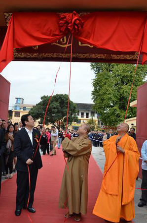 随后,大圆通寺监院慧莲法师、闵行区副区长程向民先生分别发表了讲话。之后,上海玉佛禅寺方丈觉醒法师、闵行区副区长程向民先生、大圆通寺监院慧莲法师正式为大圆通寺揭牌。