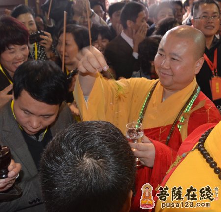 觉醒大和尚为居士洒净(摄影:妙娴)