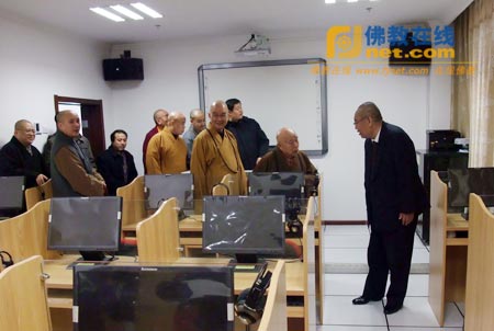 在嘉木样院长的陪同下,传印会长一行参观了藏语系高级佛学院新近落成的综合教学楼——阳光楼。随后,传印会长还饶有兴致地参观了多媒体教室、会议室、学僧宿舍等处,并询问了阳光楼建设的相关情况。嘉木样院长向传印会长一行详细介绍了阳光楼的建设情况及功能布局。