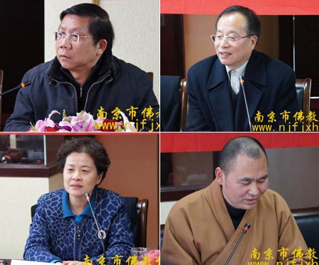 2012年1月18日下午,南京市佛教协会在随园大厦会址召开2012年迎新春茶话会。南京市人大民宗侨外委朱淮宁主任,南京市民宗局李兰局长、宗志清副局长,南京市政协社法委徐福华主任、卢正生副主任,江苏省佛教协会副会长、南京市佛教协会会长隆相法师,江苏省佛教协会副会长、南京市佛教协会副会长兼秘书长莲华法师,市佛协各位副会长、有关寺院负责人,南京市各区县民宗局局长应邀参加了茶话会。