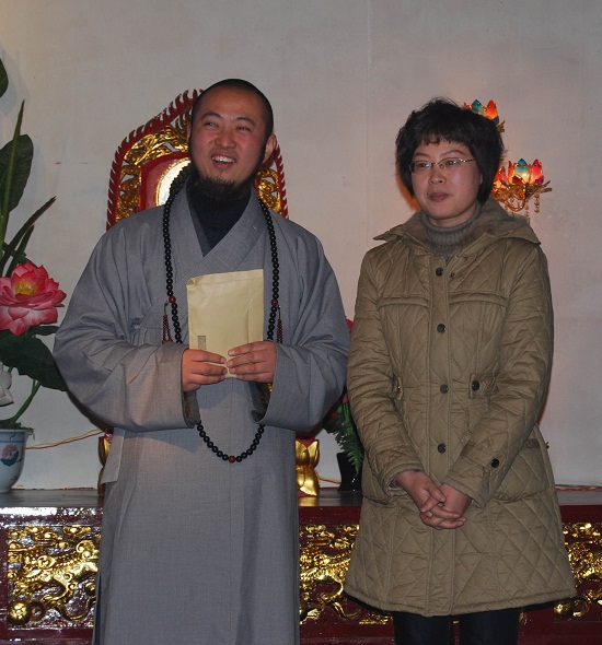 能超大和尚、能开大和尚、玉平法师为居士授予荣誉证(摄影;唐明)