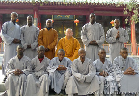 2012年2月19日,来自非洲的六名少林弟子与永信方丈一同在少林寺方丈室前欢迎新来的四名弟子。目前,少林寺已经有十名来自加蓬、喀麦隆、乌干达、科特迪瓦、刚果(布)的非洲弟子来到少林寺学习。少林寺将免费为他们提供三年食宿,以学习少林文化。