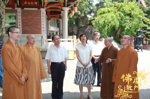 今天上午,中共厦门市委常委、统战部部长黄菱,在市民宗局局长曾文瑛、市委统战部联络处处长苏清臻、一处处长黄镇辉等人的陪同下到厦门市佛教协会及市重点寺院虎溪岩寺、鸿山寺调研。