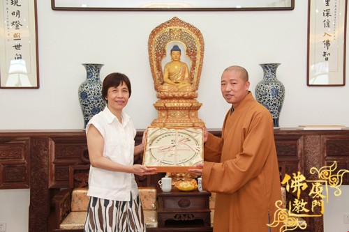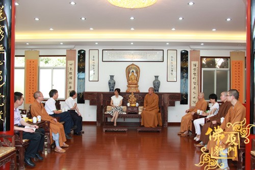 上午9点,厦门市佛教协会常务副会长定恒法师、副会长界象法师、法源法师、法云法师、普端法师、副会长兼秘书长净心法师、驻会副秘书长世澄法师等热情的接待了黄菱部长一行,并于佛协会议室座谈交流。净心法师受会长则悟大和尚委托向黄部长详细汇报了佛协工作及厦门佛教发展现状等情况,黄部长对厦门佛教界在促进社会和谐和精神文明建设等方面发挥的积极向上的作用表示肯定和赞誉,并希望再接再励为和谐社会多做贡献。