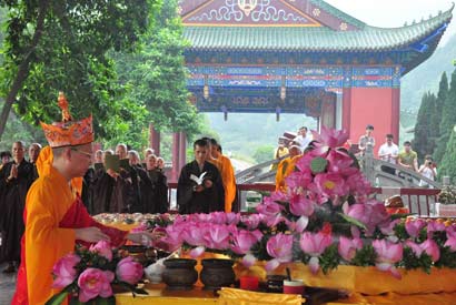 2012年8月25日(七月初九日)启坛日上午8时50分,法会正式开始。宽运法师于此间开示“佛教盂兰盆供的起源与意义”。 (宽运法师博客)
