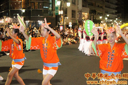 从高圆寺站到新高圆寺站之间的街道成为露天的舞台,1万多名阿波舞演员在这里尽情舞蹈,宣告了东京夏季的结束。