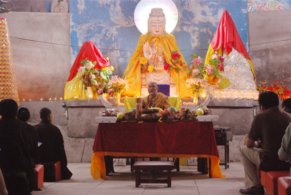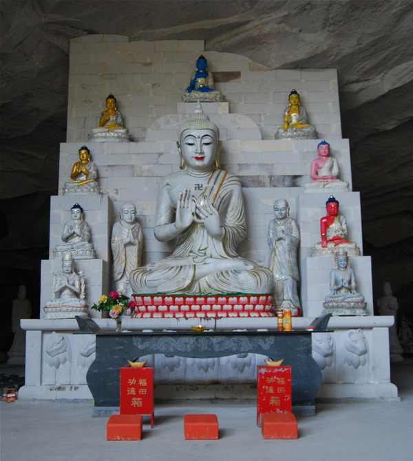 2012年08月29日(农历七月十三)上午,天台山慈恩寺在寺院洞窟内举行药师佛灌顶法会。法会由具有该法门法脉传承的智渡法师主法;来自全国各地80多名己修习《药师佛大愿持诵法》、愿意受持菩萨戒的信众、寺院部份常住参加了此次法会,灌顶法会从上午08:30 开始,11:50 结束。