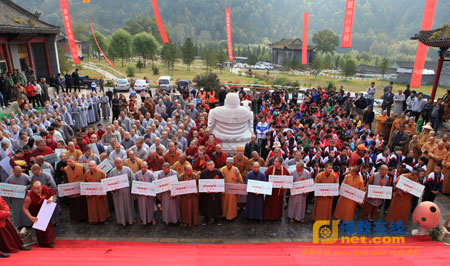 2012年9月19日上午,山西省五台山佛教界以“捐资助教、慈爱人间”为主题的“宗教慈善周”活动启动仪式在五台山寺庙中心群广场上隆重举行。