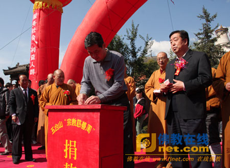 忻州市宗教局局长赵雁宾、五台山风景名胜区委副书记赵培官率先捐款