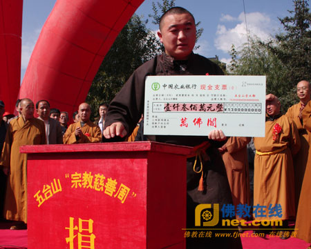 五台山寺庙代表万佛阁捐赠善款