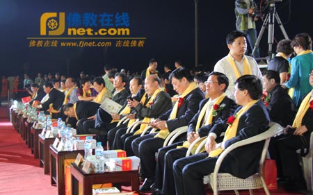 国家宗教事务局副局长蒋坚永,浙江省副省长郑继伟,宁波市委副书记、市长刘奇,浙江省政协原副主席徐鸿道,浙江省政府副秘书长马林云,宁波市人大常委会副主任胡谟敦、副市长陈奕君,宁波市政协副主席蒋剑巍、胡建岳,奉化市委书记张文杰,奉化市委副书记、市长陈志昂等各级领导出席开幕式;中国佛教协会副会长、浙江省佛教协会名誉会长、普陀普济禅寺方丈道慈法师,中国佛教协会张琳副秘书长,中国佛教协会教务部副主任长顺法师,浙江省佛教协会会长、雪窦寺方丈怡藏法师;著名学者钱文忠、凤凰卫视知名主持人杨娟、演艺界明星凌峰、齐秦、齐豫、童自荣、葛平等领导、佛教界、学术界人士出席开幕式。中国佛教协会,上海佛教协会会长、玉佛禅寺方丈觉醒法师分别致发贺信。