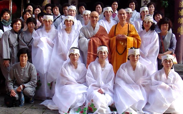 2012年9月4日晚,韩国曹溪宗金刚净土寺住持慈愿法师带领韩国佛母会一行30多人到达安徽天柱山三祖禅寺,这是佛母会第二次朝礼祖庭。次日清晨,他们穿上白色的礼服(给佛祖敬礼时用的衣服)在大雄宝殿举行了庄严的供佛、赠礼仪式,和上次一样,他们用很多精美的礼品供佛,并向宽容法师赠送了金色的织锦袈裟,以此来表达他们对佛陀、祖师的崇敬以及对宽容法师的敬仰。