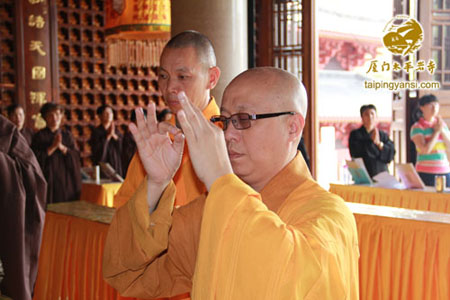 2012年10月21日,上午,新加坡佛教总会副会长,佛牙寺、护国金塔寺方丈法照法师一行莅临厦门太平岩寺参访。厦门太平岩寺住持世澄法师率两序大众于山门前恭迎法照法师到来。时值厦门太平岩寺万佛法会共修日,法照法师于大雄宝殿礼佛后,在殿前为共修居士慈悲开示,遵嘱居士勤礼佛、多诵经,清净三业,真切求三宝加持。应众之请,法照法师、世澄法师同在场居士合影留念。