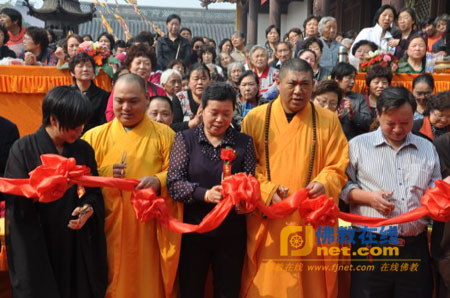 当天上午10时出席庆典仪式的领导和天台寺监院圣明法师、大德居士代表一起为千手观音佛像剪彩。随后,千手观音佛像开光法会在观音殿举行,由江苏省佛教协会副会长、无锡市佛教协会会长能开法师为法会主法,天台寺两序大众8位法师加持法会,法会于上午11时圆满。来自江苏本省、浙江、福建、广东、香港、澳门等地约2000余居士信众参加了这一盛会。(图、文:唐明)