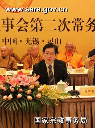 传印会长在常务理事会上讲话(图片来源:国家宗教局)