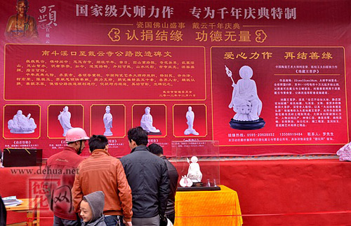 泉州开元寺方丈道元大和尚参加了千年庆典活动,并主持中国陶瓷艺术大师苏献忠监制的“袒膊祖师瓷塑雕像”开光仪式。开光后的袒膊祖师瓷塑雕像以及中国陶瓷工艺美术大师柯宏荣、中国陶瓷艺术大师陈桂玉夫妇联袂创作瓷雕作品《地藏王菩萨》当场接受信众认捐,所有认捐善款将用于戴云寺的基础设施建设,包括南斗溪口至戴云寺公路建设。