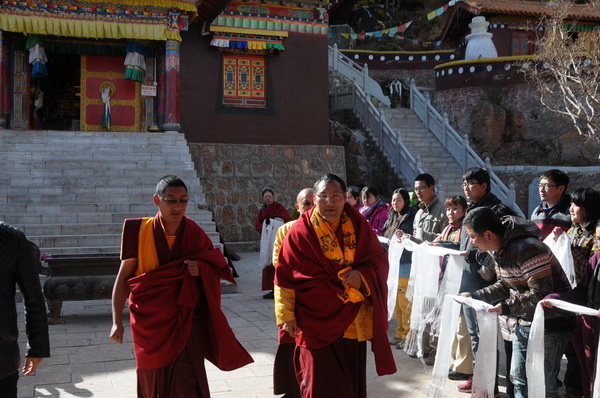 第十世木里香根活佛到云南丽江噶举寺院参观