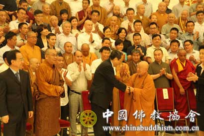 中共中央政治局常委、全国政协主席俞正声会见与会代表(图片来源:中国佛教协会)