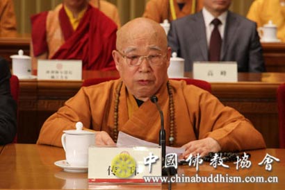 中国佛教协会会长传印长老在会上讲话(图片来源:中国佛教协会)