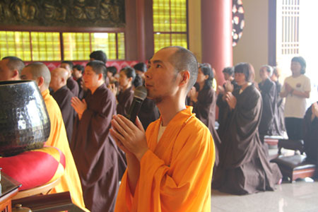 忠明法师领众诵经