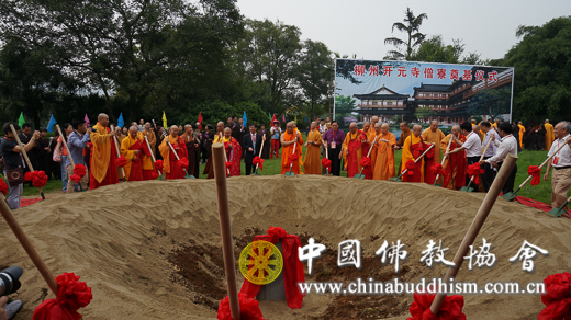 参加法会的诸山长老和嘉宾为柳州开元寺僧寮奠基仪式剪彩