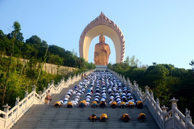 拜佛是“体力活”,何况天气这么炎热,无疑是对信仰与意志的考验。出发前,还为这帮年轻的学生捏把汗。因为在交流中,我们了解到,大多数同学并没有过拜佛的经历。但结果却让人意外,一个多小时的拜佛活动,每一个学子都成功地拜到了大佛脚下,整个过程非常圆满。看到大家汗流浃背,却欣然法喜的样子,我们深深被感动。信仰可以点燃心的力量。