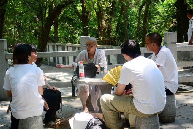 午饭后,营员们开始了秀峰之旅。秀峰是庐山著名的人文景点,这里有太多历史与文化的记忆。学子们在聆听了讲解和参观之后,在树荫下自由交流和讨论。同学们兴致都很高,表现出对传统文化浓厚的兴趣。在被问及几天学习下来的感受时,陈同学的回答很精辟:“万念归善”。通过学习和思考,他得出人生应当以善为归,以利益他人为目标,得到了大家一致的赞同。