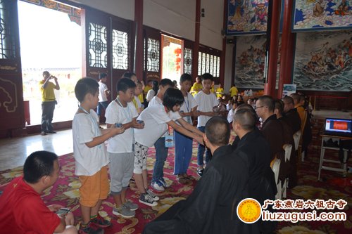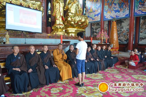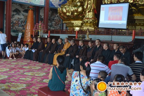 2014年7月29日,广东燕岩六祖古寺夏令营的第七天,同时也是此次夏令营活动的最后一天。当天由宽静大和尚,各法师,学生,以及赶赴而来的学生家长们全体向上礼佛三问讯。