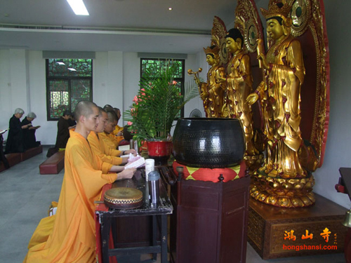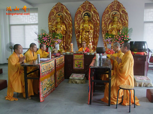 2014年7月27日,农历七月初一,鸿山寺在三圣殿内,举行超度法会。