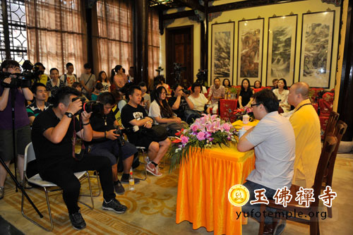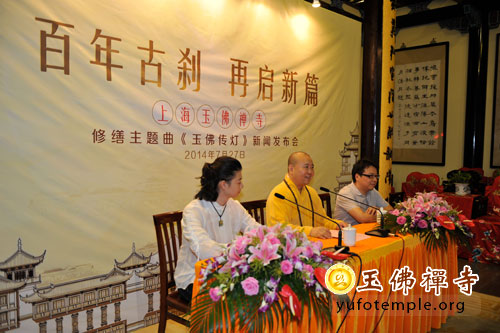 2014年7月27日下午,著名青年歌手霍尊清幽、空远的歌声,在上海玉佛寺上空久久回响。上海玉佛禅寺为消除公共安全隐患保护性修缮工程专门创作的歌曲《玉佛传灯》发布会在寺院方丈室举行。中国佛教协会副会长、上海市佛教协会会长、玉佛禅寺方丈觉醒大和尚,中国著名作曲家、编曲家、音乐制作人安栋教授,青年歌手霍尊以及上海数十家媒体的记者约50余人参加了今天的发布会。