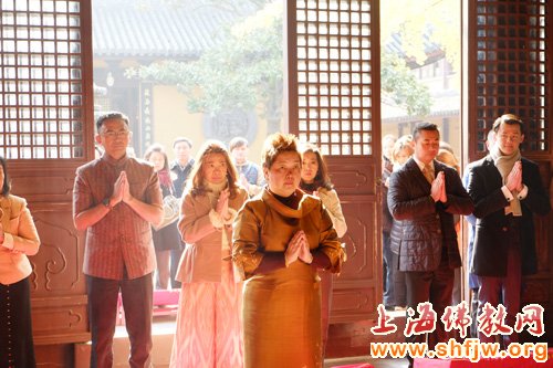 2014年12月4日,泰王国驻沪总领事馆总领事芙诗功女士率团前来上海龙华古寺,祈请龙华古寺法师念经祈祷,仰仗佛力法力僧力为泰王国国王祈福。