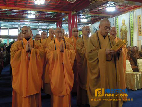 台湾中国佛教会副理事长心茂法师领众念诵祭文