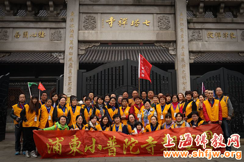2015年3月21日至22日,上海浦东小普陀寺组织了为期两天的宁波佛教朝拜参访活动。在常住法师的带领下,小普陀护法居士朝圣团一行53人先后参访了宁波著名寺院七塔寺,天童寺,阿育王寺,通过一天的参访行程,感受了名刹古寺的悠久历史和历劫重生的艰难历程,瞻礼佛祖舍利,感怀盛世昌隆和佛法的复兴。第二天朝拜雪窦山资圣禅寺弥勒道场,远观以契此和尚为原型塑造的露天弥勒铜佛造像,气势恢弘,人间弥勒的感召让人由衷顶礼膜拜。
