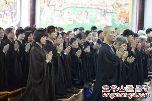 2015年6月7日,宝华山隆昌寺在家居士菩萨戒圆满,来自全国各地数百名信众求授居士菩萨戒。依次受四不坏信法、三聚净戒、十善戒及十无尽戒。 江苏宝华山隆昌寺方丈心平大和尚为在家善男信女传授三皈五戒居士菩萨戒。