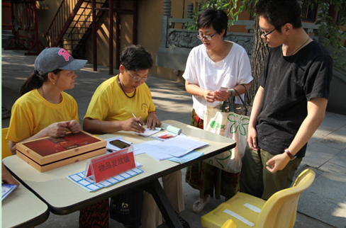炎炎烈日下,果城寺的师父和护法居士们不辞辛劳地迎接着一批批来自不同省市的营员们。营员们怀着无比兴奋和挚诚的心,来到久久期盼的殊胜道场,每个人脸上都流露出向往禅修生活的挚诚喜悦。护法居士们温馨亲切地招呼纷至沓来的报到营员,认真履行报到手续,审核、填表、编班、发放营服营鞋、发放胸卡、寮房登记住处等。一切井然有序,规划不杂不乱,让每名学员都找到了回家的感觉。