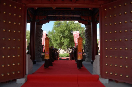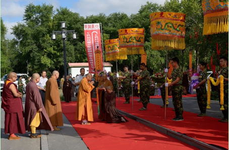 2015年7月14日,阳光如金,天空如洗。大庆果城寺南山门外,馨香仪仗、钟磬齐鸣, 300多名来自各地的禅修夏令营学子整齐地排班列队,迎请参加开营仪式的嘉宾和领导:中国佛教协会副会长、黑龙江省佛教协会长、哈尔滨佛学院院长静波大和尚,黑龙江省佛教协会常务副会长天台宗第46代传人、汉地大般若第三代传人、黑龙江省双鸭山市九峰禅寺住持、双鸭山市佛母山开山住持正开大和尚,黑龙江省佛教协会副会长、大庆市佛教协会会长本英大和尚,沈阳北塔寺、大庆正洁寺及四川理塘县下坝嘛通寺法台、四川理塘寺第九十三代法台夏坝仁波切,和黑龙江省及大庆市佛教协会的相关领导。学员们虔诚地向各位嘉宾敬献曼陀罗花环,现场充满一派祥和喜庆的节日气氛。