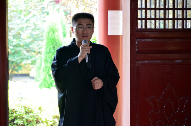 一位男居士接着与大家分享了闭关心得。这位居士已是第三次参与百万佛号闭关,有很深切的信愿之情。他不仅长期在寺院做义工服务,而且曾从祖庭一步一拜,历时9天到达东林大佛脚下。这位居士谈到:佛陀曾说,“发心如初,成佛有余”。自己第一次闭关非常精进,但第二次就略有松懈。本次闭关,自己努力克服昏沉、散乱等状态,提起了刚刚学佛时的勇猛之气。这位居士向大家介绍了“十念法”念佛的心得并分享了关中如何经行的体会。